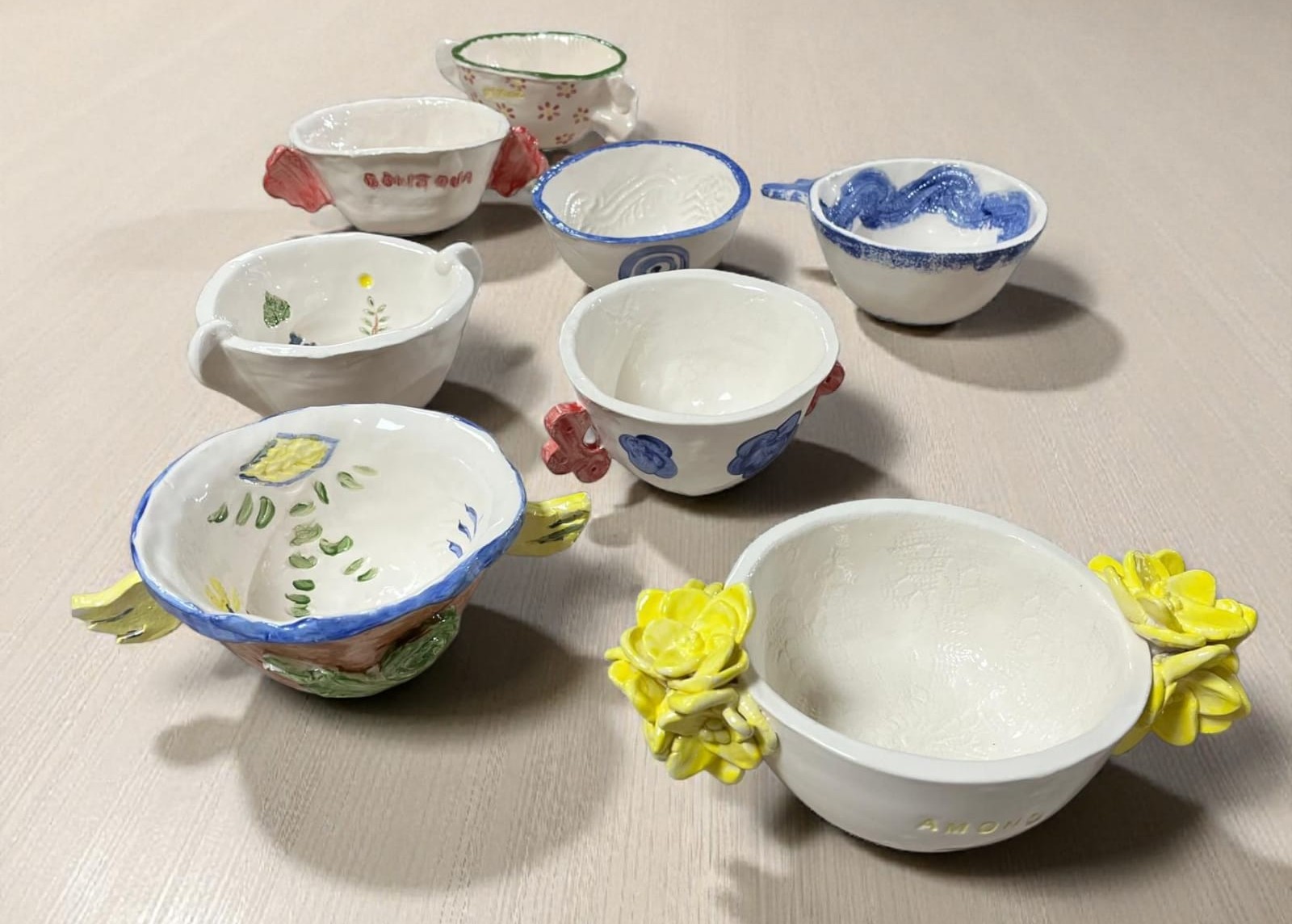 Lors de cet atelier, chaque participant choisit une pièce de céramique — tasse, assiette ou bol — et la personnalise à l’aide de peintures et d’émaux professionnels.